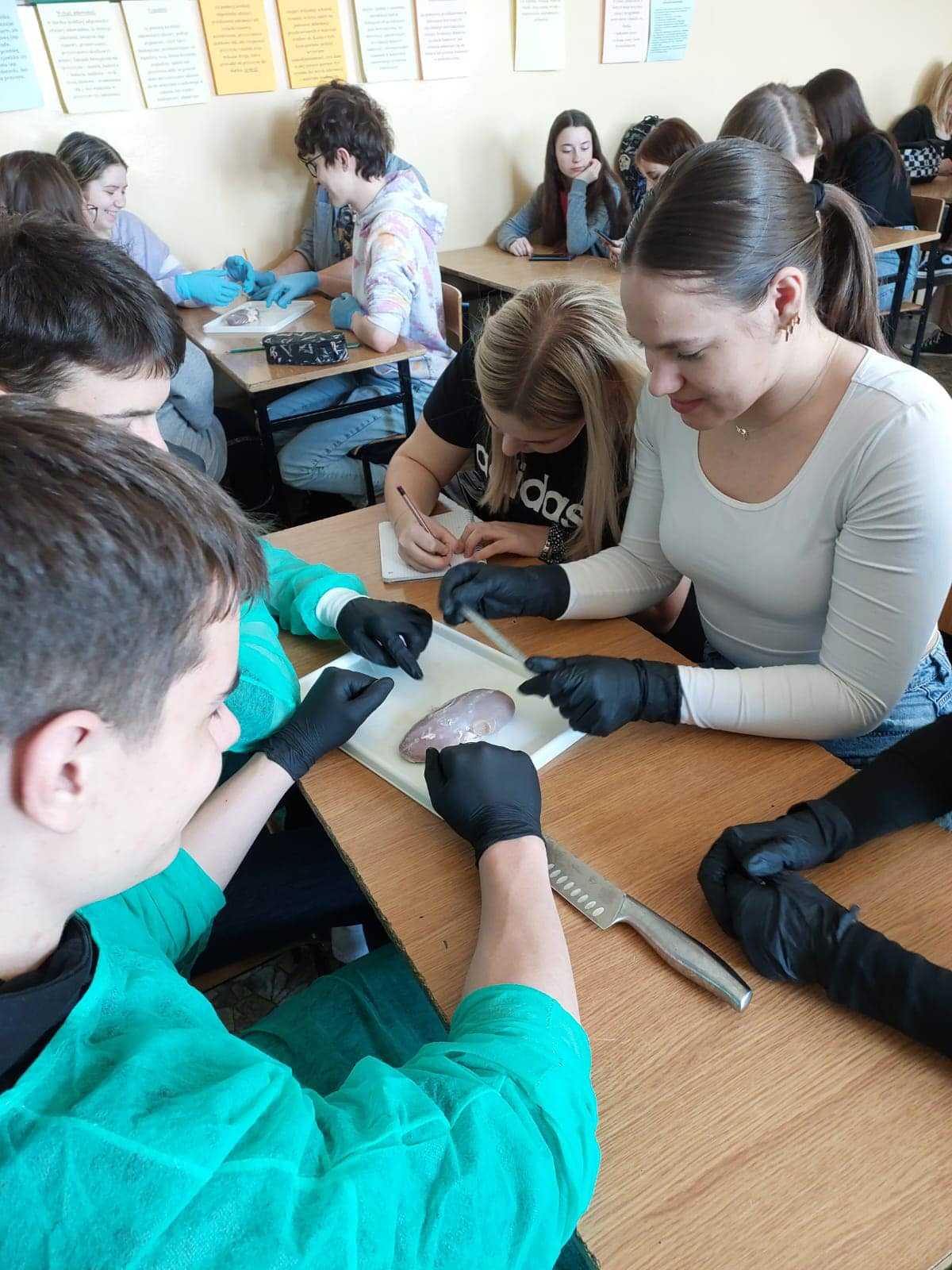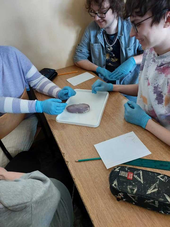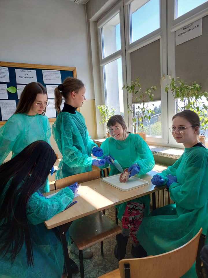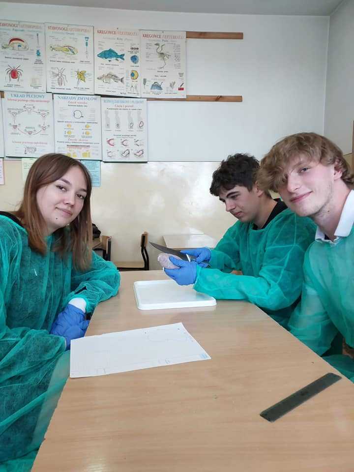 Uczniowie klas 3a i 3b przeprowadzili sekcje narządów wewnętrznych, takich jak serce i nerki. Obejrzeli przedsionki, komory w sercu oraz zastawki. Bardzo dziękujemy Panu D. Chaberskiemu i masarni w Skurpiu za kolejne gratisowe dostawy narządów dla uczniów naszego liceum.